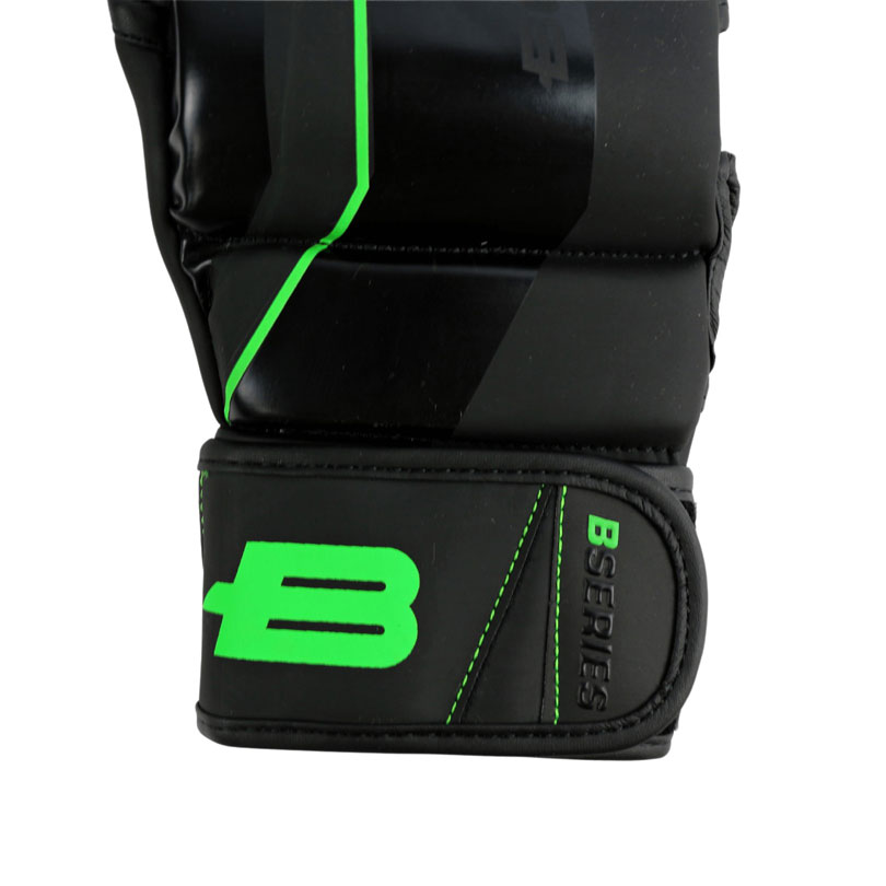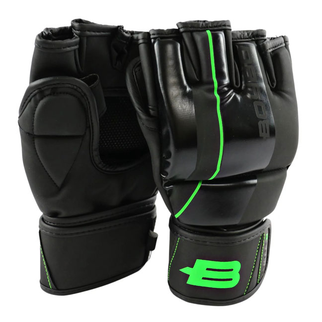 Перчатки BoyBo B-Series для смешанных единоборств. Модель отличается стильным дизайном и удобной открытой конструкцией. Перчатки выполнены из долговечной эко - кожи Flexy, обеспечивают высокую степень защиты кисти при ударах, открытые фаланги позволяют бороться, не стесняя движения, при этом имеется дополнительная защита большого пальца.