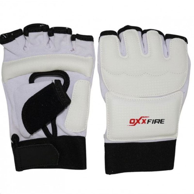 Перчатки OxxFire предназначены для занятий тхэквондо и другими видами единоборств. Изготовлены из искусственной кожи. Композитный литой вкладыш из пены высокого давления обеспечивает однородный уровень поглощения удара, что гарантирует идеальную защиту руки. Перчатки имеют открытые пальцы и ладонь. Внутренний материал обладает антиаллергенными и антискользящими свойствами и моментально испаряет жидкость с внутренней поверхности перчаток.