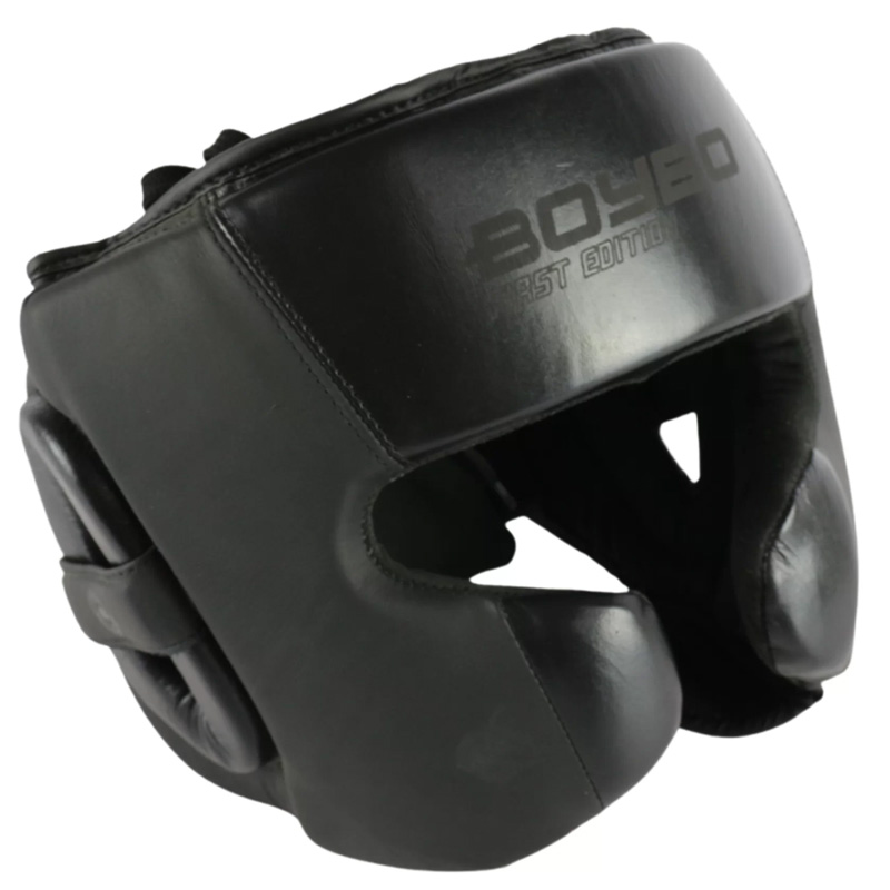 Шлем BoyBo First Edition мексиканского стиля защищает уши, скулы и лоб. Шлем на основе из литого пенного вкладыша, обеспечивает максимальную защиту в спарринге. Особенностью данного шлема является открытый подбородок. Зона ушных раковин усилена, имеется защита от воздушного удара в виде поперечного ремня. Шлем можно регулировать по окружности теменной части шнурком, на затылке при помощи застежки на липучке, что дает 100% комфорт и легкую подгонку.
