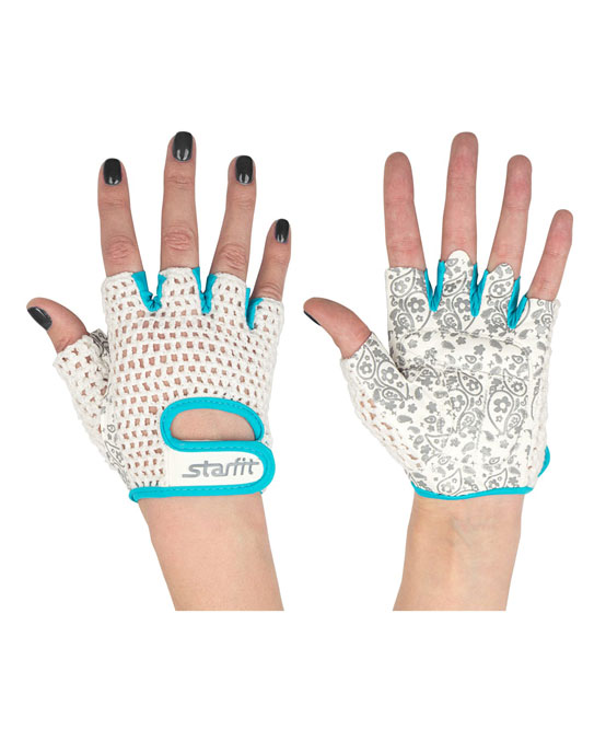 Перчатки для фитнеса STARFIT SU-110, белый/голубой