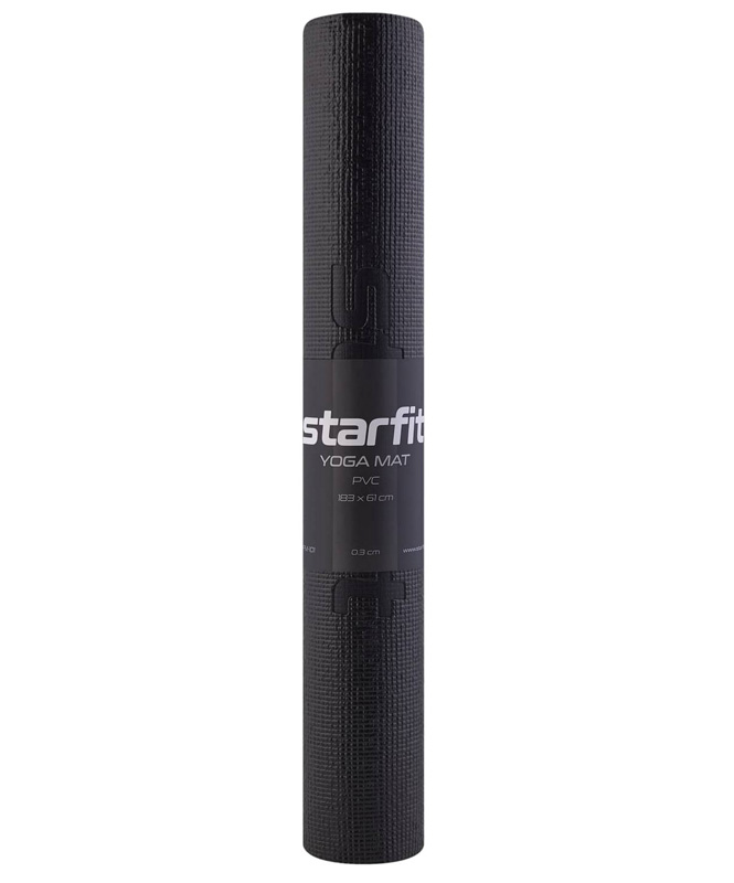 Коврик для йоги STARFIT FM-101 PVC 183x61x0,3 см, черный