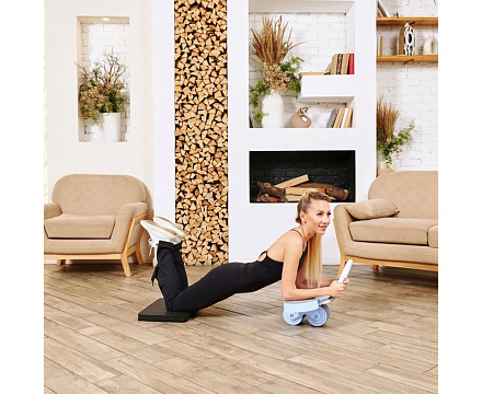 Тренажёр для пресса AB Roller голубого цвета — это идеальное решение для тех, кто хочет укрепить мышцы пресса и улучшить свою физическую форму. Он оснащён съёмным поручнем, который обеспечивает удобство использования и хранения. Поручень диаметром 2,1 см регулируется на 2 уровня по длине. В комплекте поставляется мягкий мат для коленей размерами 34 х 17 см и толщиной 6 мм. Монохромный LCD-дисплей диаметром 6,5 см отображает время тренировки. Дисплей работает от батарейки LR1130, не входит в комплект. Между подлокотниками располагается подставка под смартфон: разнообразьте свои тренировки просмотром фильма или подкаста.