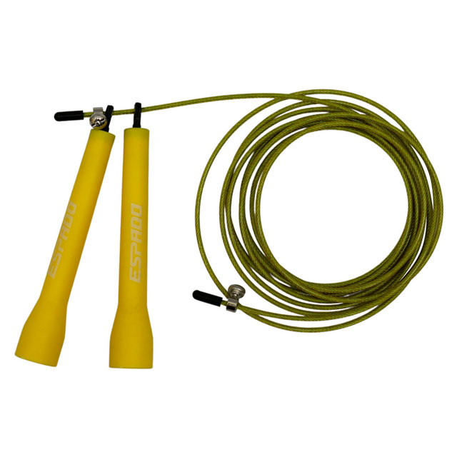 Скакалка Espado ES2142 позволяет совершать двойные и тройные прыжки. Длина регулируется с помощью специального ограничителя. Система скоростного вращения: встроенные подшипники позволяют увеличить темп прыжков и повышают плавность хода шнура. Для безопасности тренировок стальной трос покрыт защитным слоем.