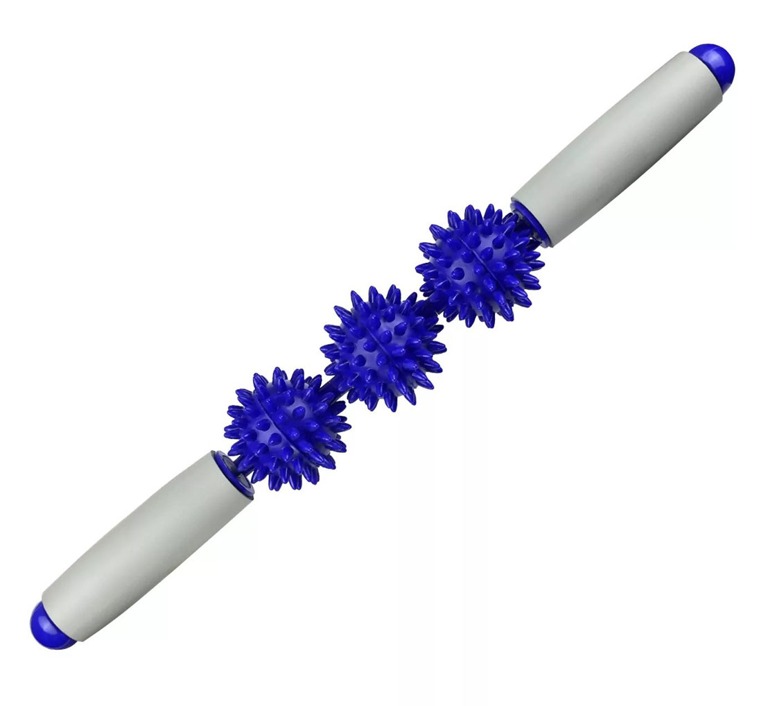 Массажер-палка с 3 роликами, синий