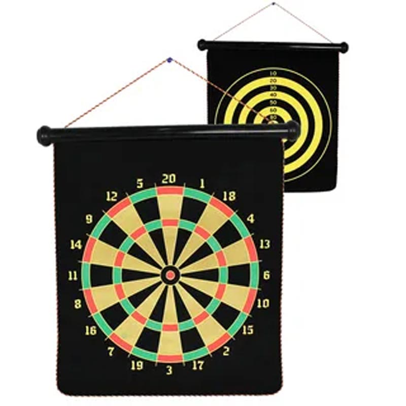 Дартс магнитный мягкий двухсторонний - спортивная игра, подойдет как для компании, так и для семейного вечера. Благодаря магнитному тонкому полю легко сворачивается и не занимает много места. В верхней части мишени располагается крепление в виде веревки, с его помощью дартс легко можно закрепить в удобном для вас месте. Дротики имеют магнитный металлический наконечник, а значит безопасны для игроков. Игра развивает ловкость, моторику рук и внимательность. Тип:магнитный, двухсторонний. Диаметр: 30 см. Материал мишени: фетр, магнитный порошок.Материал дротиков: пластик, металл.