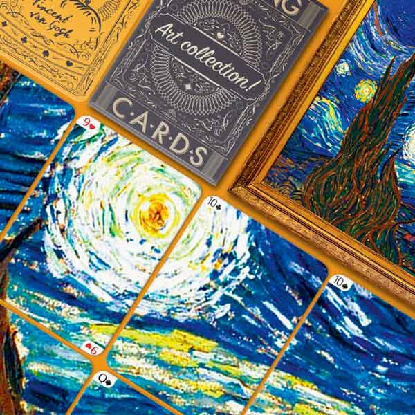 Перед вами игральные карты с иллюстрациями произведения Винсента ван Гога «Звёздная ночь». Прелесть этой колоды в том, что её можно сложить как пазл и получить цельную картину.