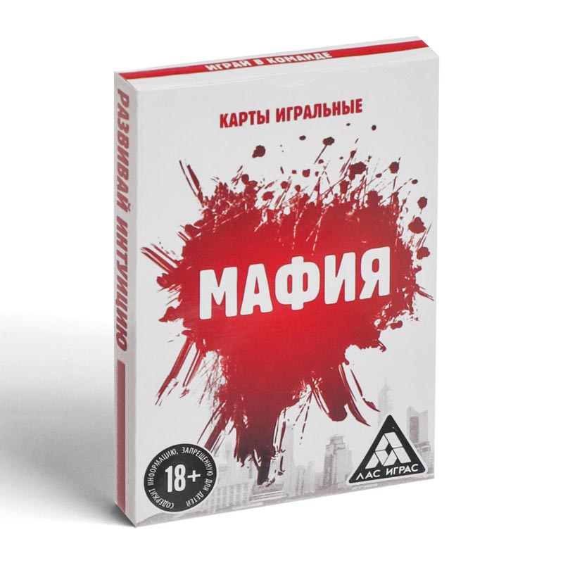 Классические карты в новом исполнении: на каждой карточке изображён персонаж из популярной игры «Мафия». Вы можете играть как в обычные карты, так и поменять формат: раздать карты, определиться с ролями участников, и пусть мафия начнёт охоту!