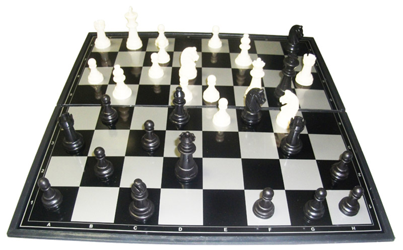 Шахматы магнитные большие, размер доски 310*310 мм, высота фигур. короля 55 мм, в картонной коробке.
