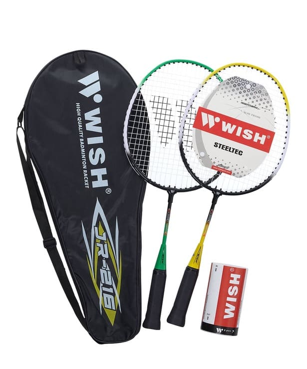 Набор для бадминтона WISH Steeltec 216K (2 ракетки+2 волана), желт/зелен