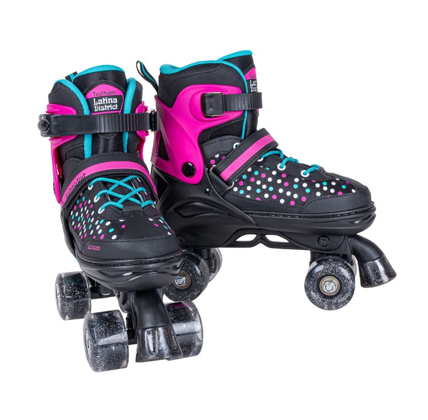 Latina District – крутые ролики от бренда Tech Team, которые выполнены в крутом дизайне специально для танцев. За счёт четырёх колёс эти ролики очень устойчивы – легче держать равновесие. Размер регулируется в диапазоне 3 см, поэтому они долго прослужат.