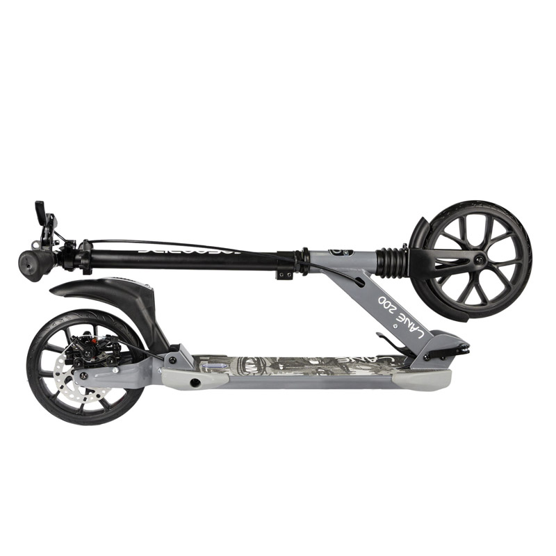 Самокат LANE - прекрасный вид транспорта для спорта и отдыха, подойдет как подросткам, так и детям. Двухколесный складной самокат. Отличается интересным дизайном, компактными размерами и превосходными техническими характеристиками. Самокат оснащён складной рулевой колонкой с замком, грипсы из гипоаллергенного материала TPR. Заниженная дека самоката позволяет комфортно передвигаться по городу, отталкиваясь только носком стопы. Стальная противоскользящая дека обеспечивает контроль над самокатом и безопасность пользователя. Дисковый задний тормоз.