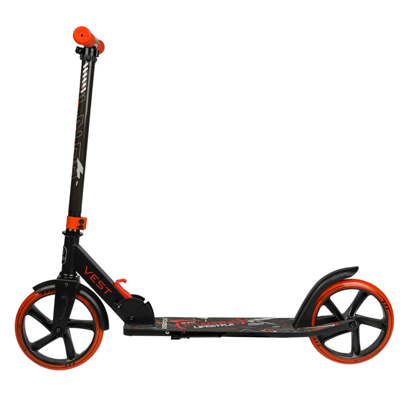 Самокат VEST - прекрасный вид транспорта для спорта и отдыха, подойдет как подросткам так и детям. Двухколесный складной самокат отличается интересным дизайном, компактными размерами и превосходными техническими характеристиками. Самокат оснащён складной рулевой колонкой и складными ручками. Заниженная дека самоката позволяет комфортно передвигаться по городу, отталкиваясь только носком стопы.