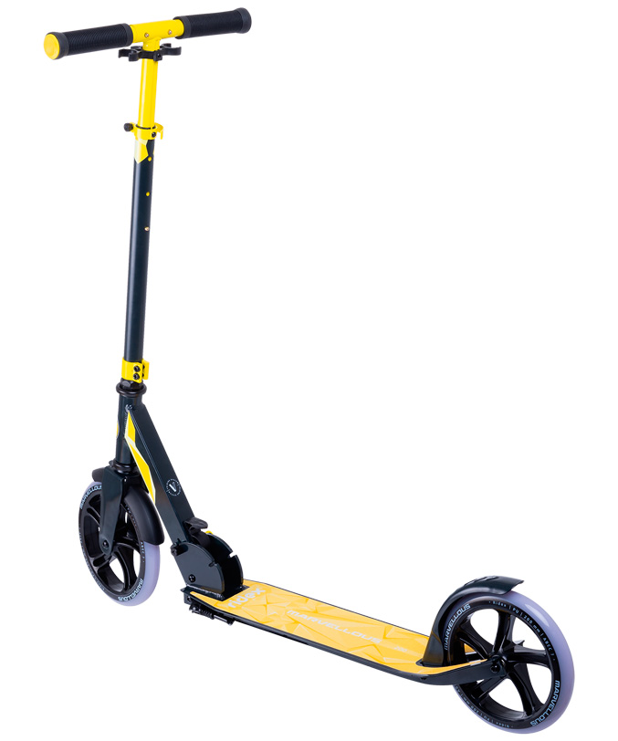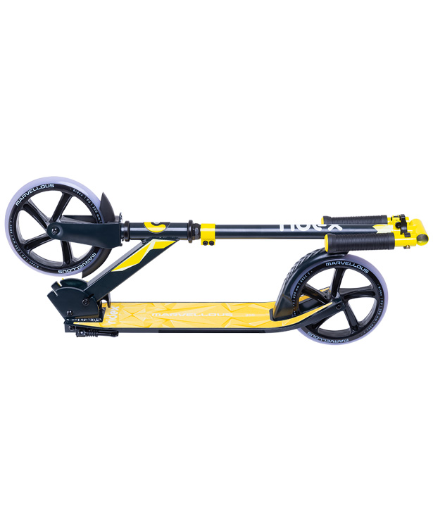 Удивительная модель в линейке RIDEX! Этот двухколесный самокат сделан из легкого и высокопрочного алюминиевого сплава, поэтому поездки на нем просты и безопасны. Помогает в этом и заниженная дека, которая позволяет передвигаться по городу в расслабленном режиме, отталкиваясь лишь носком. Складной механизм удобно расположен между декой и рулём, а фирменный ремень в комплекте повышает уровень комфортного перемещения складного двухколесного самоката в сложенном виде. Полиуретановые колеса диаметром 200 мм быстро домчат вас из одной точки в другую, а шустрые подшипники ABEC-7 обеспечат отличный накат. Marvellous – это комфортный и практичный самокат на двух колесах для городского пространства. Приятным бонусом для вас станет яркая палитра моделей из семи цветовых решений, среди которых вы найдёте ту единственную, подходящую именно вам.