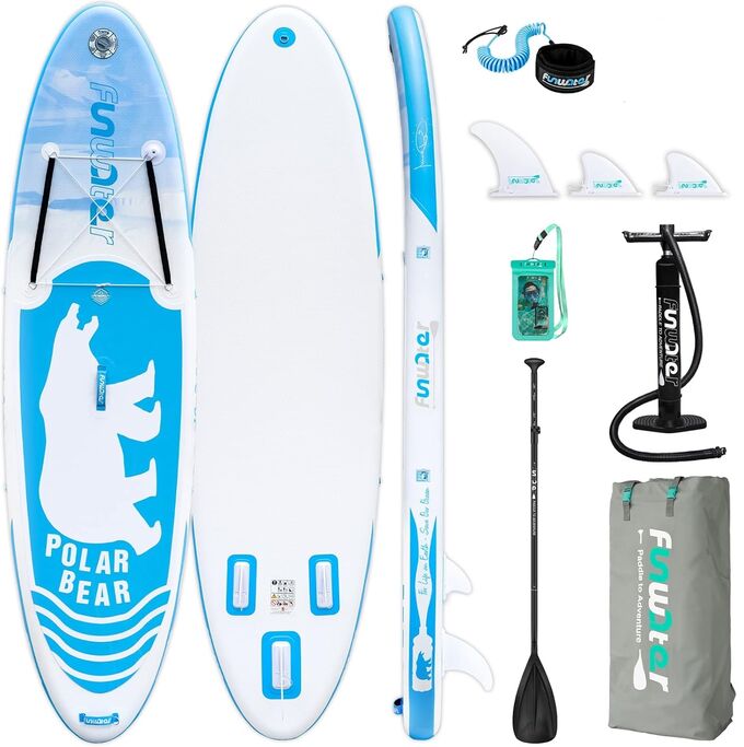 Сапборд FUNWATER POLAR BEAR 320*83*15 см (весло, рюкзак, насос, ремкомплект, лиш) двухслойный