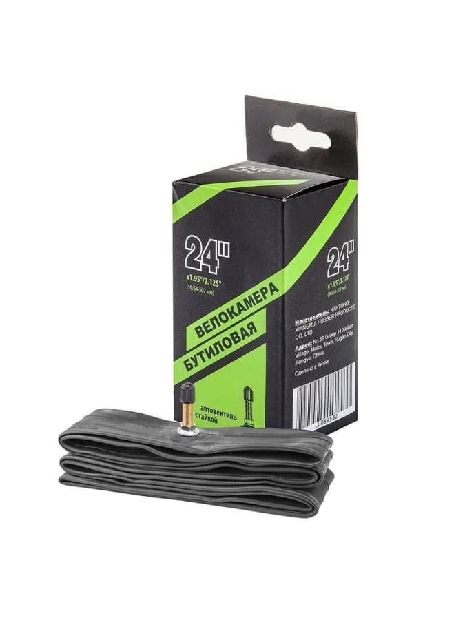 Велокамера NTG 24"x1.95"/2.125" автовентиль, с гайками и шайбой для крепления вентиля к ободу, в индивидуальной упаковке.