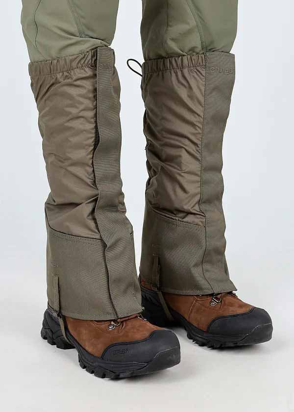Высокие гамаши из мембранной ткани для защиты ног от грязи, влаги и снега.
