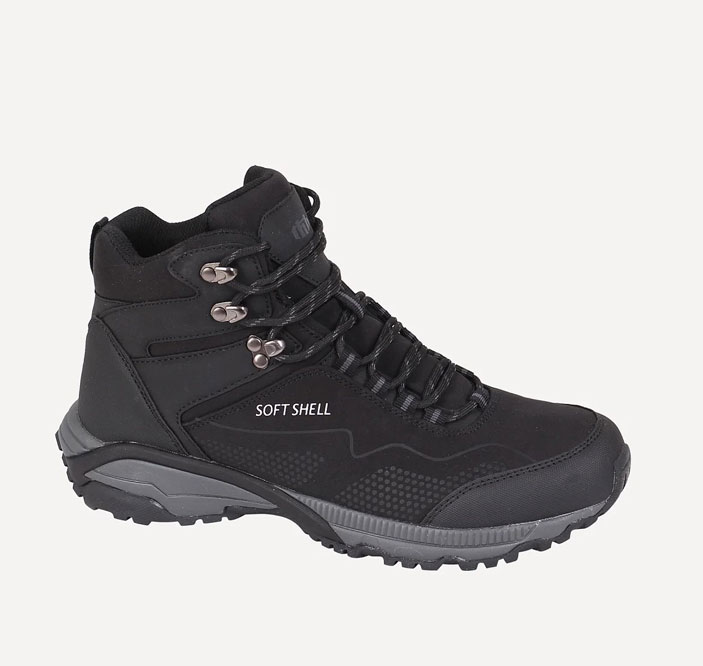 Материал верха — текстильный материал SoftShell. Особенности конструкции верха: язык с глухим клапаном. В носочной и пяточной части имеются усиливающие накладки с ПУ покрытием, обеспечивающие дополнительную защиту обуви от механических воздействий при ходьбе.