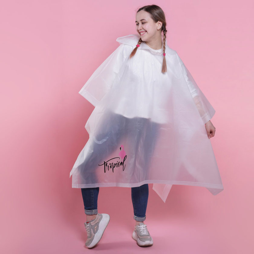Дождевик защищает одежду от влаги. В дождевике руки останутся свободными, потому что не придётся брать с собой зонтик. Плащ складывается и хранится в компактном чехле на молнии. В таком виде он занимает мало места и легко вмещается в рюкзак или сумочку.