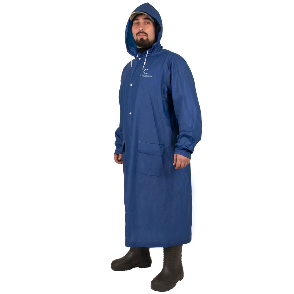 Плащ-дождевик СЛЕДОПЫТ плотный PVC с капюшоном, синий