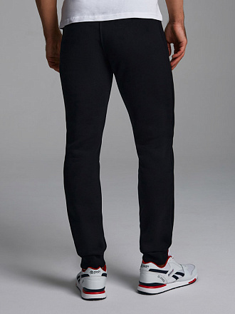 Брюки мужские из плотного и мягкого хлопкового трикотажного полотна с изнаночным начесом. Брюки зауженного силуэта с прорезными карманами, с открытой молнией.