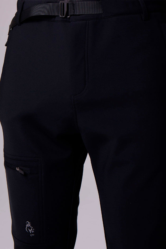 Брюки выполнены из эластичного смесового двойного материала на основе нейлона с добавлением спандекса на флисе. В модели используется высокотехнологичный материал A-kind fleece tech Softshell — это ткани с многослойной конструкцией, внешне напоминающие нейлон, а с изнанки − флис. Основные свойства: отведение влаги, вентиляция, сохранение тепла, защита от ветра и осадков. Температурный режим софтшелл ткани обеспечивает комфорт ношения в определенных погодных условиях без дополнительных поддевок, уменьшив вес и объем одежды и сохранив свободу движений.