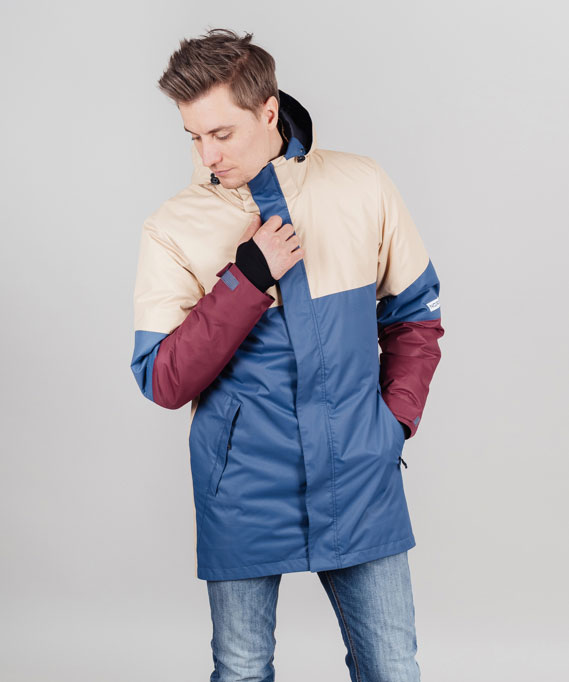 Куртка имеет ветрозащитную планку на молнии, утепленный съёмный капюшон с утягивающим шнурком и высокий воротник, что обеспечивает дополнительный комфорт в ветреную погоду. Два боковых кармана на молнии, трикотажные манжеты с отверстиями для больших пальцев и липучками.