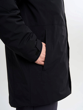 Модель выполнена из водоотталкивающей, прочной, износостойкой ткани на основе нейлона с добавлением спандекса. Нейлон создает защитный слой от воды, добавление спандекса создает необходимый комфорт при носке. Подкладка из прочного полиэстера с внутренним пух пакетом, в соотношении пух-перо 50/50. Благодаря водонепроницаемой и «дышащей» пропитке A-RAIN PROF создается защитный слой от воды. Пропитка позволяет сделать ткань гидрофобной, что позволяет каплям воды не впитываться в саму ткань. Даже во время снежной бури выступает эффективным барьером, не пропускающим влагу, а также позволяет поддерживать тепло и сухость внутри изделия.