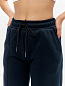 Женские брюки черного цвета палаццо изготовлены из хлопкового трикотажного полотна с изнаночным начесом. Широкие брючины можно трансформировать, собрав низ на эластичный шнур с помощью фиксатора. Удобные наклонные карманы выполнены в боковых подрезах. Пояс брюк широкий, по линии талии собран на эластичную резинку, длина пояса дополнительно регулируется шнуром.