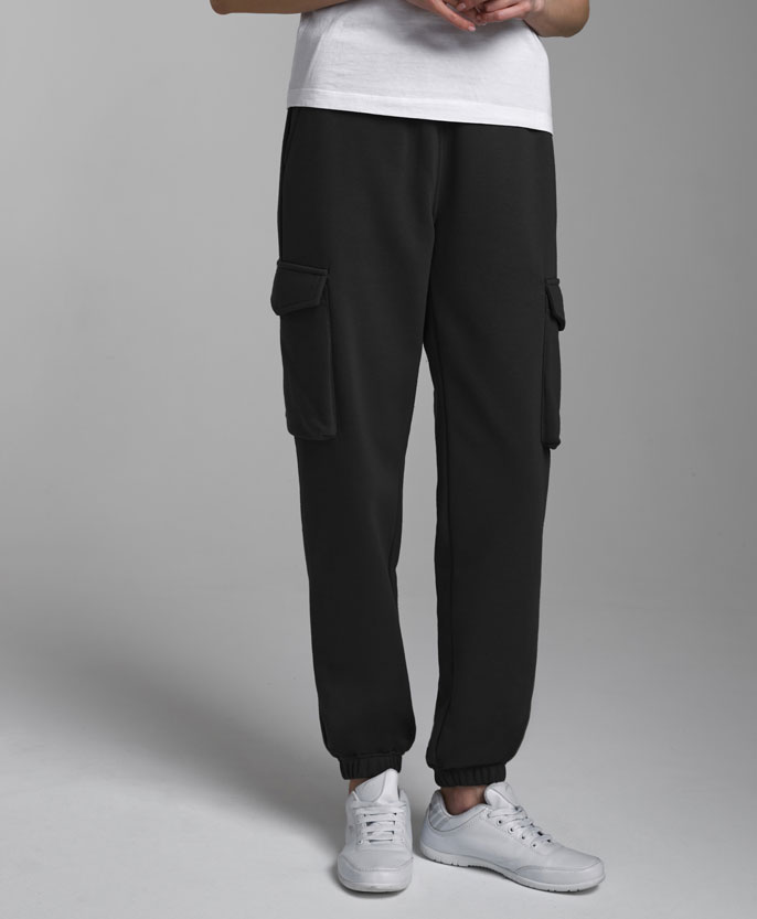 Брюки женские "Карго" из плотного хлопкового трикотажного полотна с петельной изнанкой. Карманы верхние прорезные с бочком. Есть дополнительные боковые накладные карманы, объемные, с клапанами. Низ брюк заужен и присобран на манжету с эластичной резиной. Пояс брюк дополнительно регулируется шнуром.