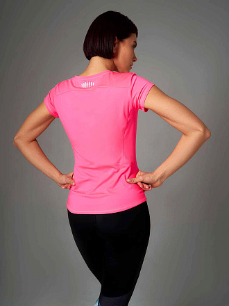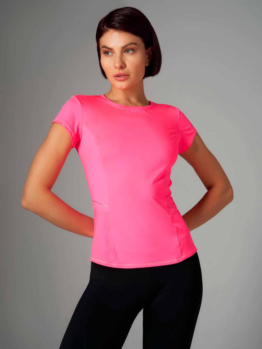 Футболка для занятий фитнесом. Крой и дизайн изделия визуально сужает талию, подчеркивая все достоинства фигуры. Высокотехнологичная ткань, приятная на ощупь, имеет хорошую воздухопроницаемость и быстро сохнет.