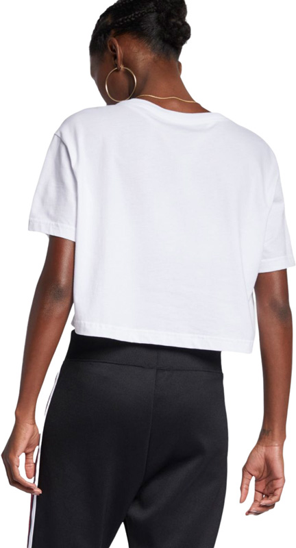 Женская укороченная футболка Nike Sportswear Essential из мягкой хлопковой ткани джерси, дополнена логотипом Nike на груди, выполненным в технике трафаретной печати. Нижняя кромка до бедер создает стильный образ. Мягкая и комфортная хлопковая ткань. Укороченная нижняя кромка до бедер. Свободный крой не ограничивает движения.