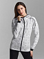 Женский спортивный костюм из хлопкового трикотажного полотна с авторским принтом. Куртка с удобным капюшоном, застегивается на молнию. Рукава куртки втачные со спущенной линией плеча. Вставка капюшона и плечевая кокетка выделены контрастным кантом. Карманы куртки застегиваются на потайные молнии и располагаются в швах отрезных бочков. На левом рукаве, на уровне плеча - термотрансфер. Низ куртки, рукавов и низ брючин слегка заужены поясом и манжетами из толстой резины. Брюки зауженного силуэта с манжетами. Наклонные карманы брюк в подрезах с потайными молниями. Пояс брюк с эластичной резиной, дополнительно регулируется внутренним шнуром. На брюках слева термотрансфер с фирменным логотипом.