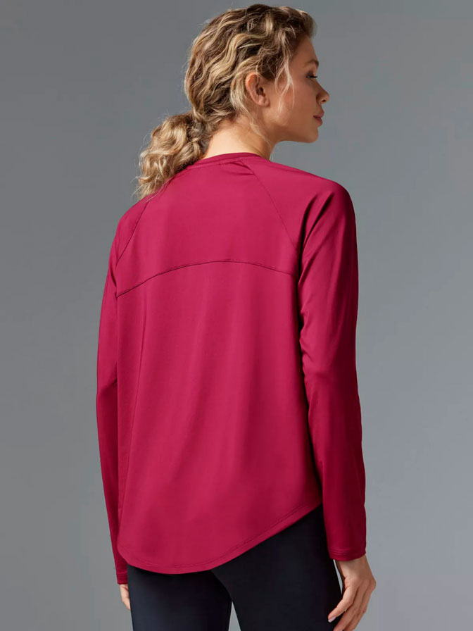 Базовый рашгард с длинным рукавом и серебристым принтом на спине. Аккуратный круглый вырез горловины подчеркивает шею, фигурный низ гармонично приоткрывает бедра.