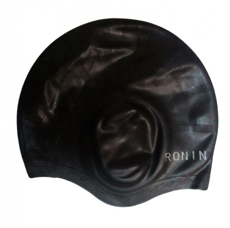 Шапочка для плавания Ronin, 100% силикон, одноцветная, черная, со специальными выемками для ушей.