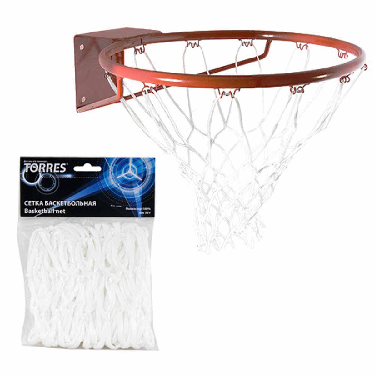 Сетка баскетбольная "TORRES" арт.SS11055, нить 4 мм полипропилен, ручная вязка, дл. 0,55 м, вес 50 гр., цвет белый.