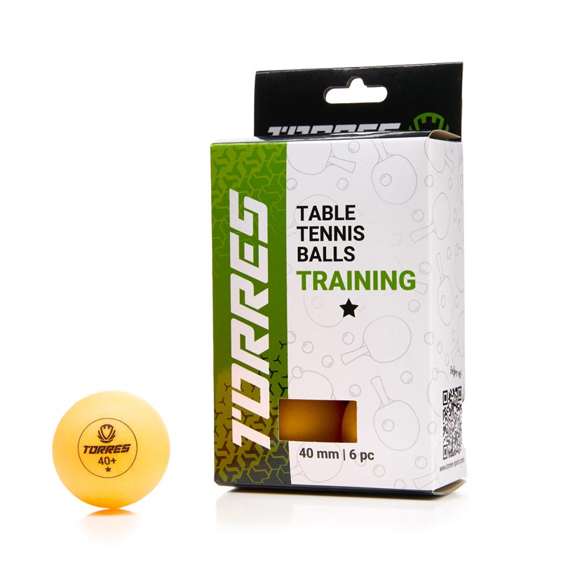 Мяч для наст. тенниса TORRES Training 1*, диам. 40+ мм, упак. 6 шт, оранж