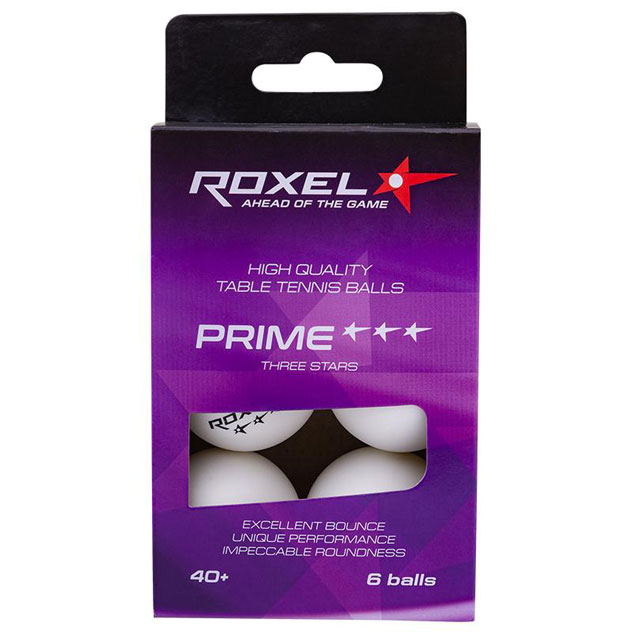 Мячи для н/т Roxel 3* Prime, белый (6шт.)
