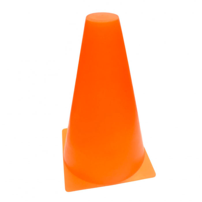 Конус напольный, высота - 15 см, диаметр окружности площадки - 9 см, полумягкий пластик.