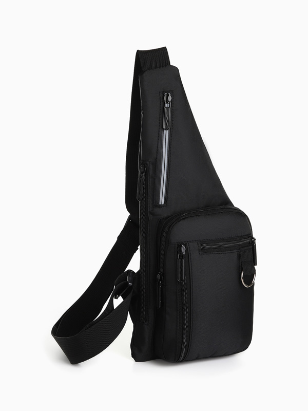 Сумка-слинг мужская на молнии, 4 наружных кармана, чёрная