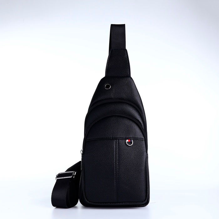 Сумка-слинг на молнии, наружный карман, отверстие для наушников, чёрная