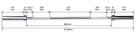 Гриф Larsen Д50мм, дл1,25м, макс.вес 150кг + 2 замка с лом.стопором