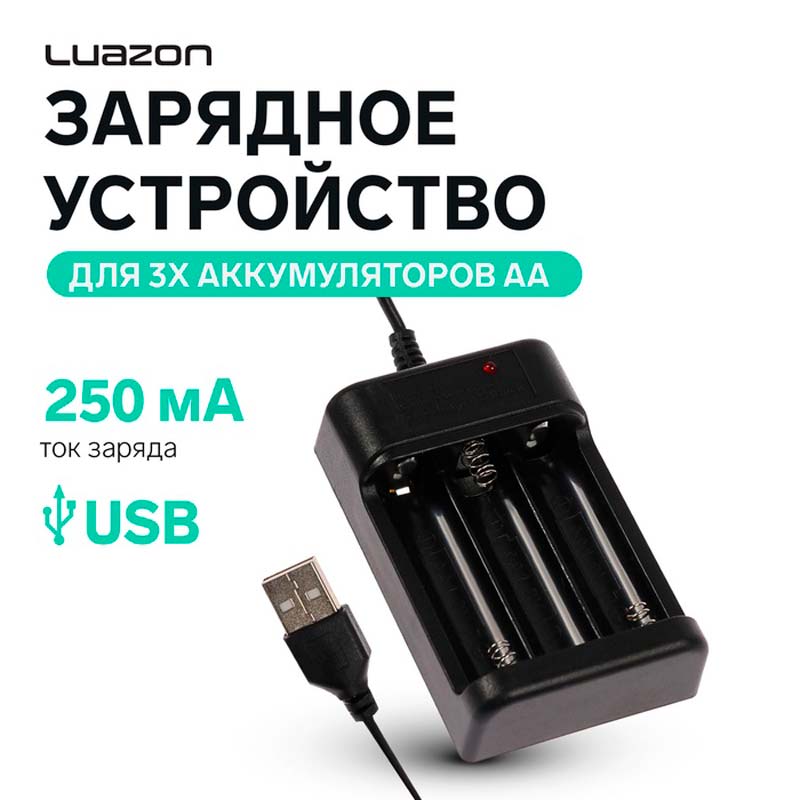 Зарядное устройство для трех аккумуляторов АА UC-25, USB, чёрное