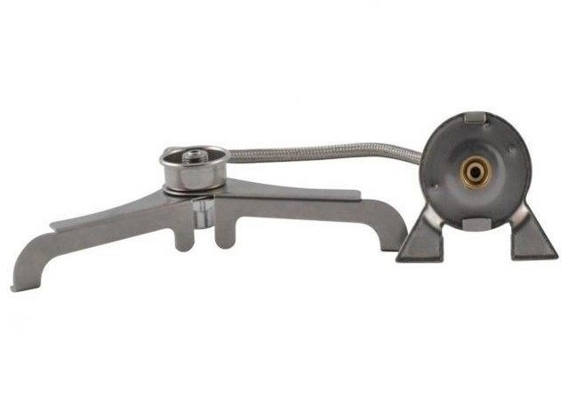 Используется для подключения светильников и портативных плит серии S с резьбовым клапаном, к газовым баллонам с нажимным клапаном и цанговым патроном. После подключения в качестве опорной поверхности используется тройная опора переходника.