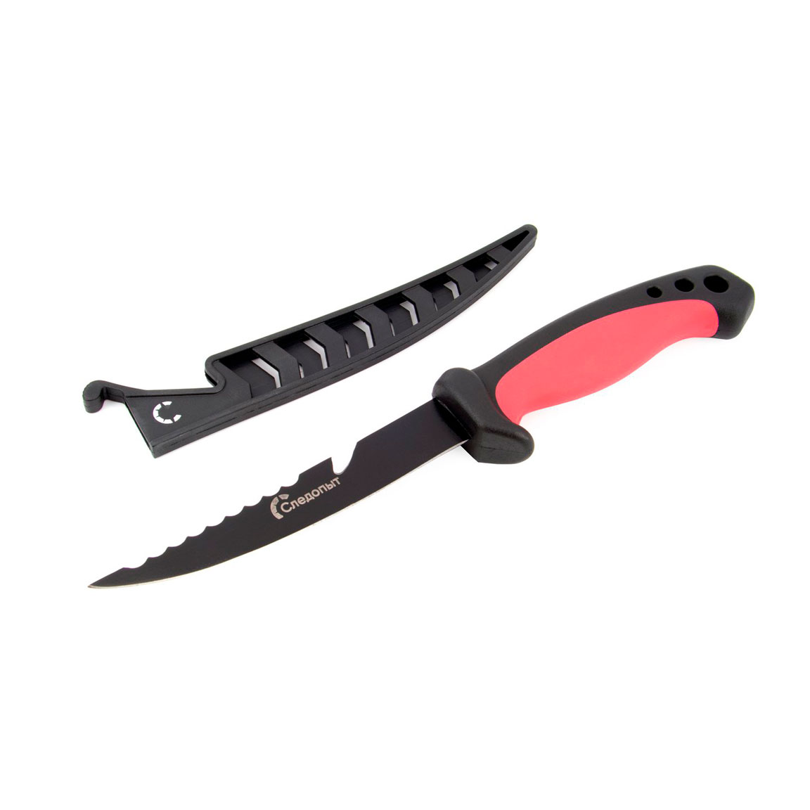 Нож разделочный СЛЕДОПЫТ филейный, прорезиненная ручка, дл. клинка 125 мм, в чехле, черный