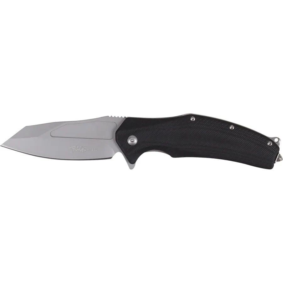 Складной нож для ежедневного ношения (EDC) с модифицированным клинком «lambfoot» («баранья нога») и фиксатором liner-lock. На обеих сторонах отстоунвошенного клинка есть широкие долы асимметричной формы, служащие для открывания клинка одной рукой. Рукоять из текстурированной G10 черного цвета. В навершии рукояти есть отверстие под темляк и стеклобой. Нож имеет клипсу для ношения на кармане, а также нейлоновый поясной чехол.