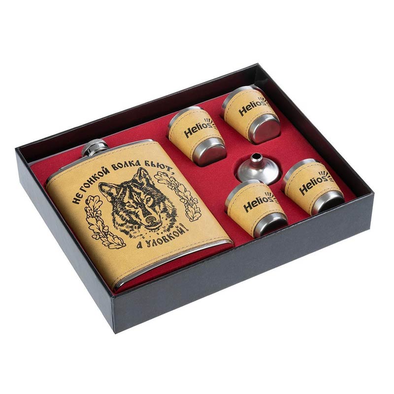 Набор Helios Волк HS-N-W-А09 (фляжка 240 мл + 4 стопки + воронка)
