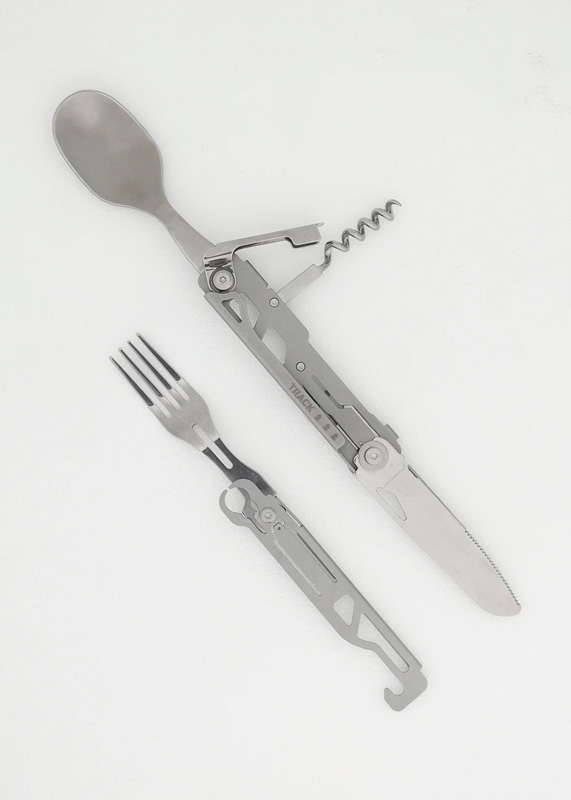 Складной набор столовых приборов с эргономичной компоновкой инструментов.