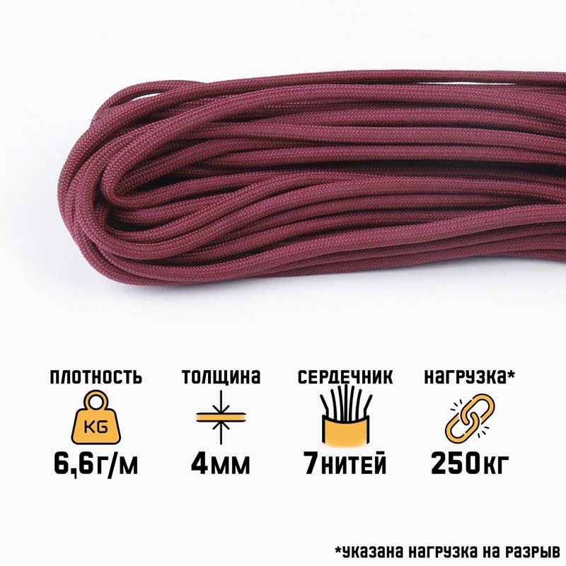Паракорд 550 d - 4 мм, 10 м, бордовый
