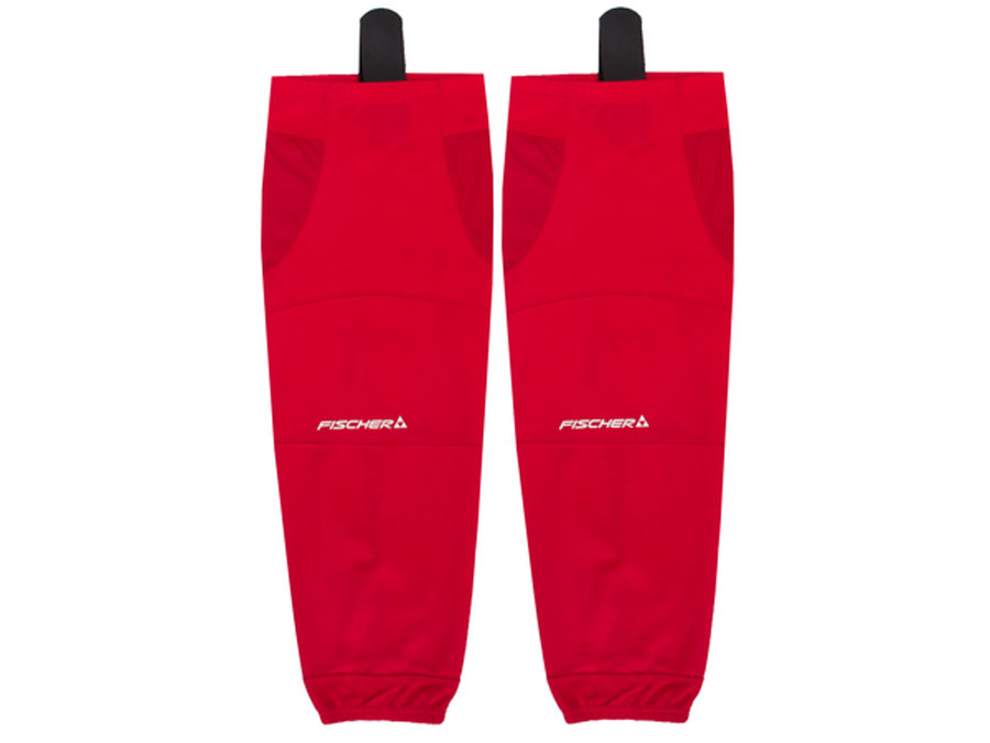 Гамаши однотонные Fisher для хоккейного игрока. Вентилируемый полиэстер. Липучки для крепления, резинка для утягивания.