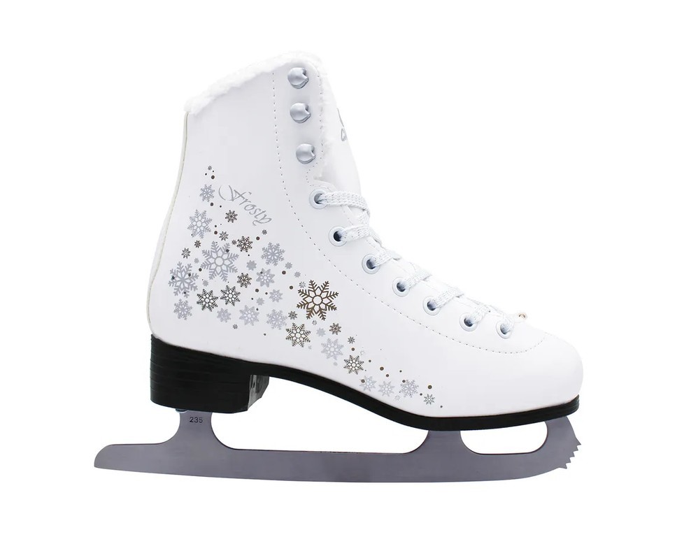 Коньки Frosty Silver предназначены для любительниц фигурного катания. Классическая шнуровка с крючками и высокая плотная колодка надёжно фиксируют ногу. Прочный ботинок выполнен из искусственной кожи. Внутренняя отделка из искусственного меха обеспечивает тепло и комфорт, а лезвие из нержавеющей стали - превосходное скольжение по льду.